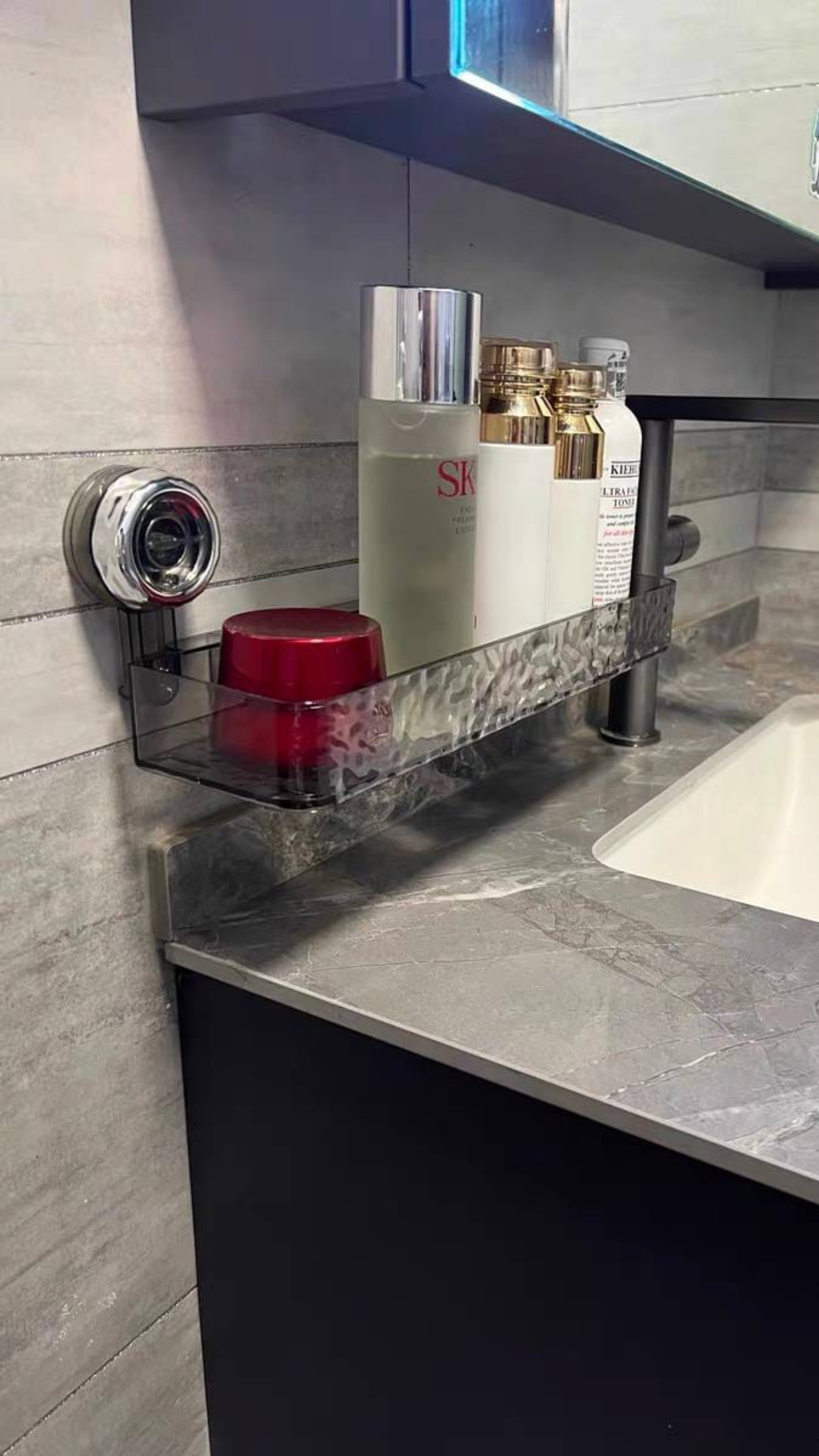 המדף שלנו משלב התקנה קלה בלי חורים בקיר, מחזיק עד 12 ק"ג ועמידות מלאה למים – מדף יוקרתי, אסתטי ופרקטי לאורך שנים.